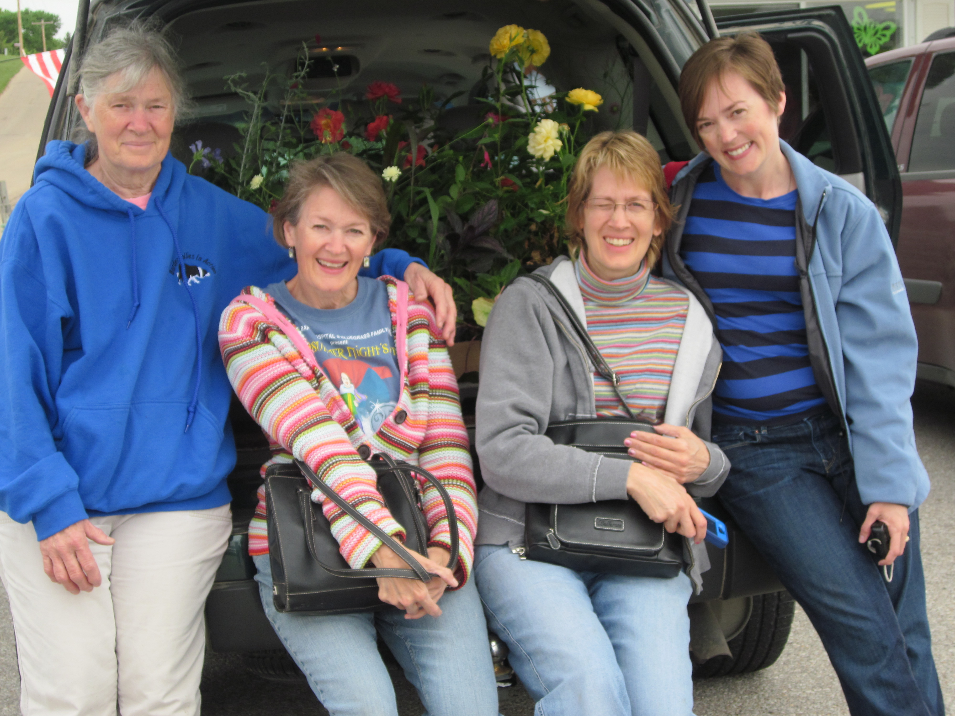 We take a Mother’s Day trip to our favorite nursery and fill our Surburban with our choices every year. That’s our longsuffering Mom, Elna, next to me. We didn’t plan on all wearing horizontal stripes, by the way. That was just a happy accident.